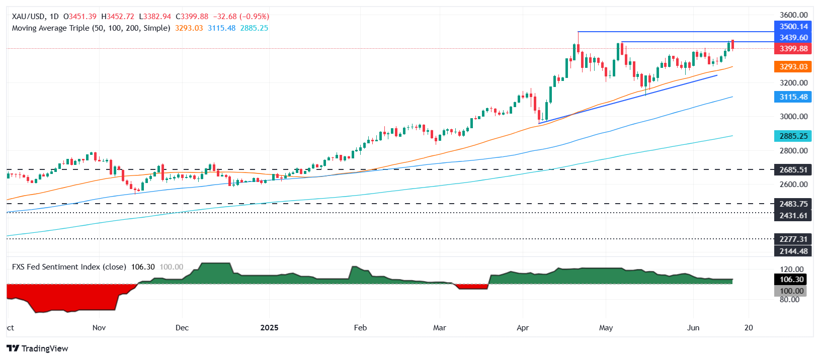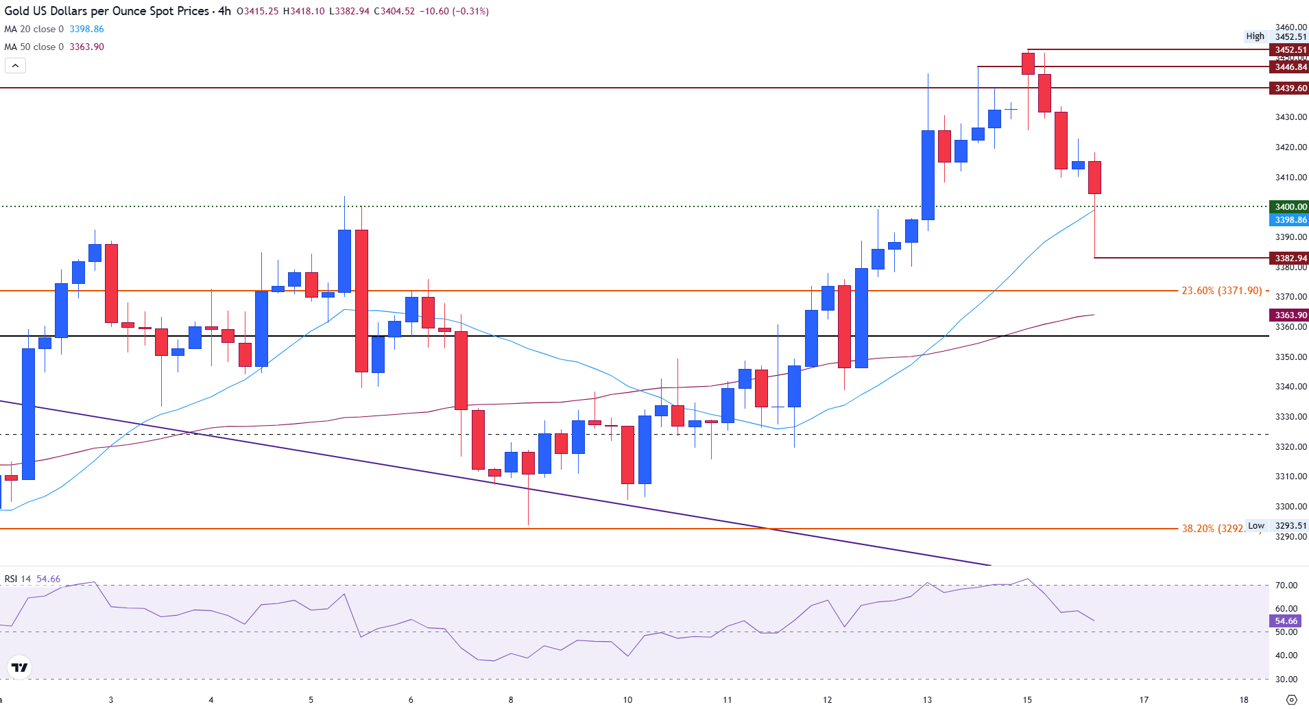 黄金在 $3,400 附近徘徊,投资者关注地缘政治风险和美元疲软