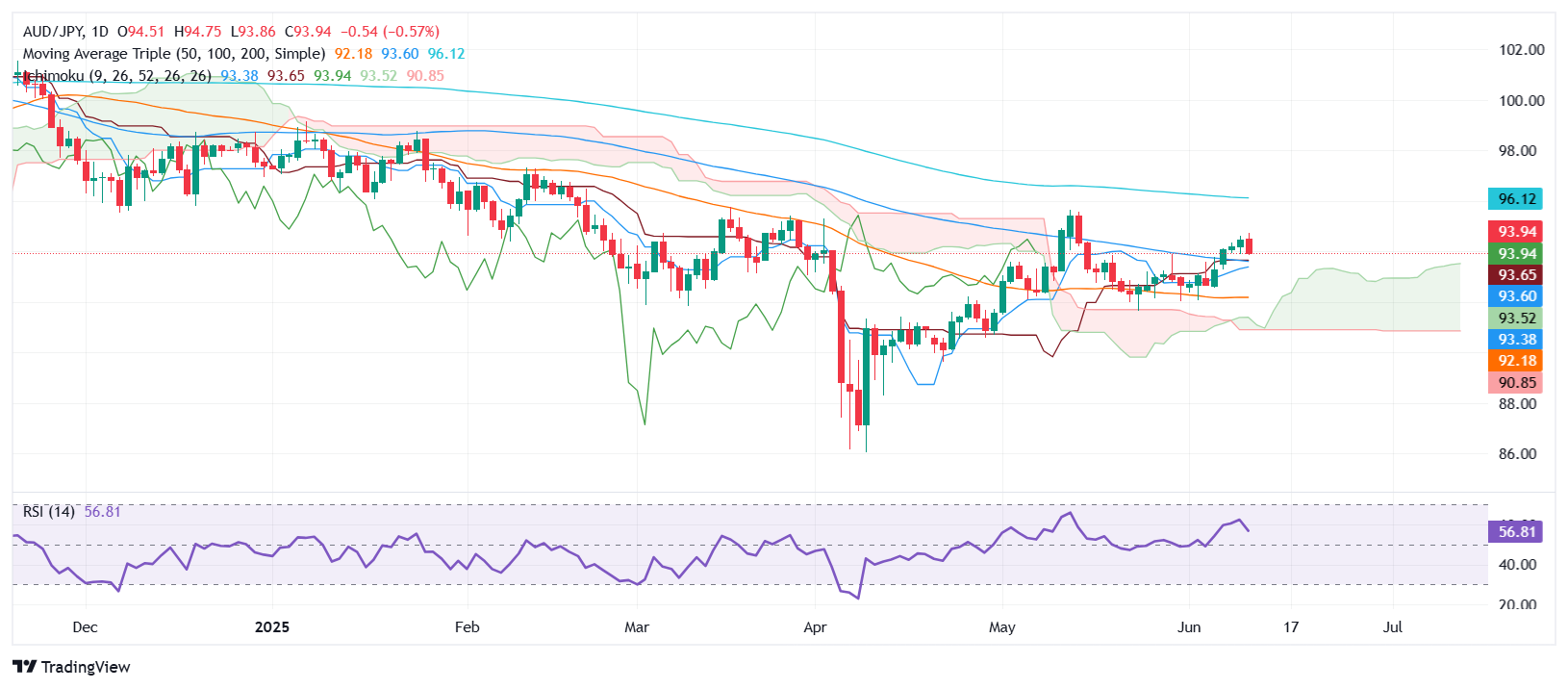 澳元/日元价格预测:触及月内高点,回落至94.00下方,出现看跌信号