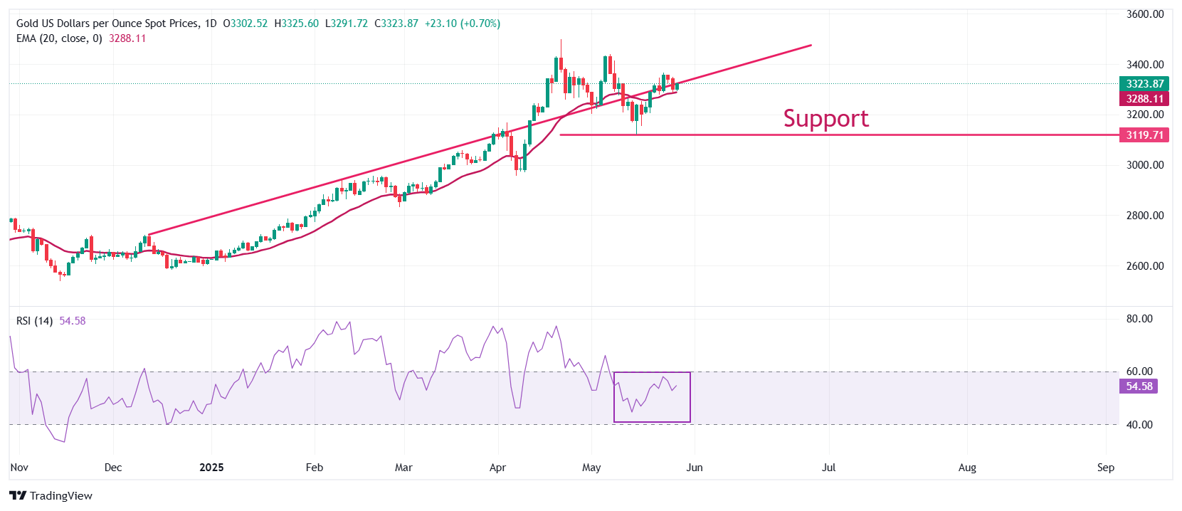 周三北美交易时段,金价(黄金/美元)上涨0.15%,接近3305美元,此前一天跌幅超过1%。由于对俄罗斯和乌克兰之间停火的希望减弱,这种黄色金属小幅上涨。