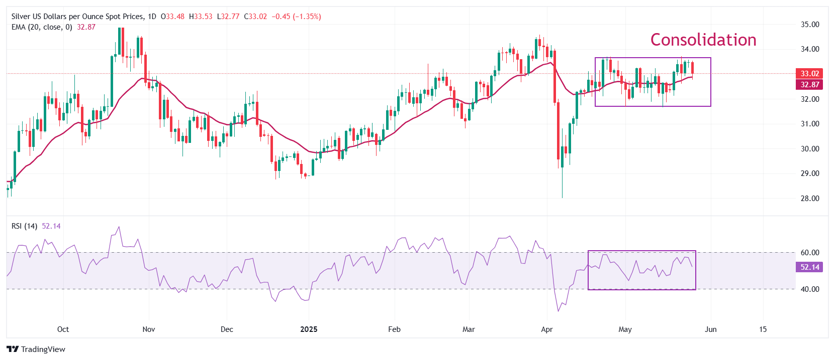 白银价格预测:白银/美元跌至33.00美元以下,因美欧贸易担忧减退