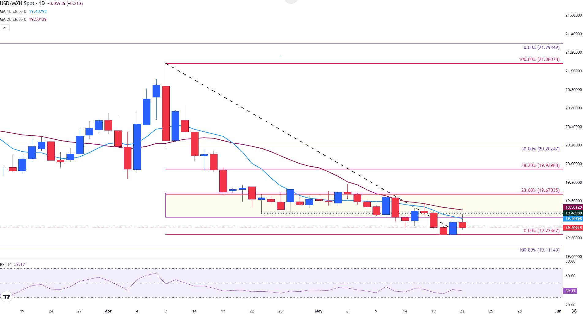 墨西哥比索(MXN)在周四对美元(USD)获得了支撑,受到了5月中旬通胀数据高于预期的影响。