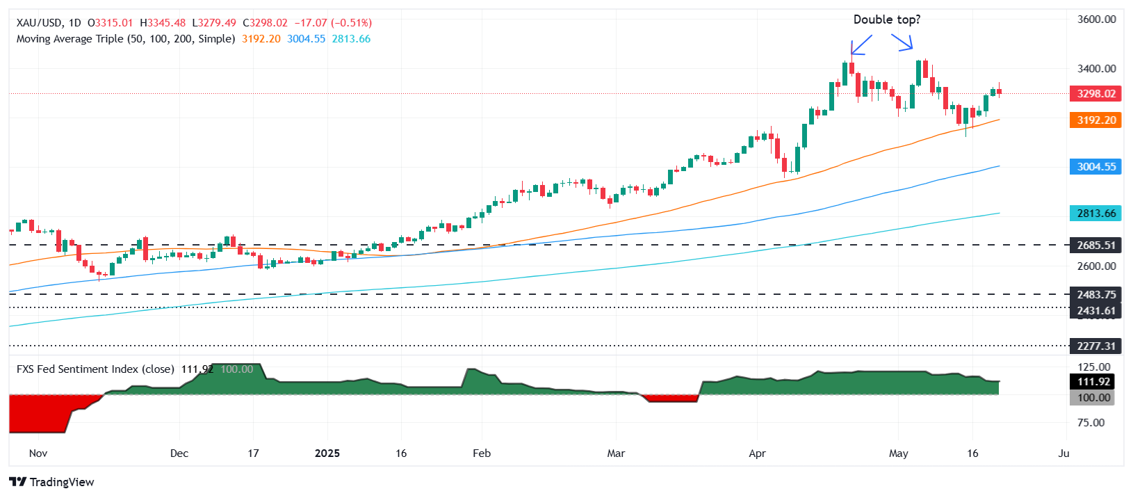 黄金价格周四下跌约0.48%,在早些时候达到两周高点3345美元后未能维持在3300美元的水平