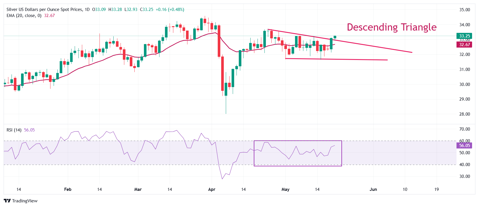 白银价格预测:白银/美元因美国信用评级下调而上涨至接近33.20美元