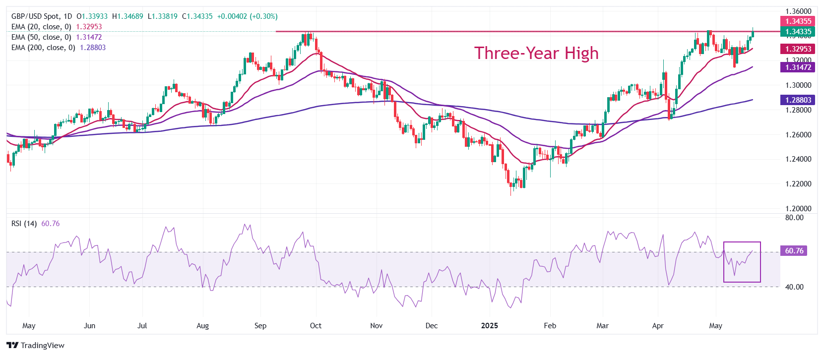 英镑(GBP)在周三的北美交易时段接近1.3470的三年新高,早些时候已创下该水平。