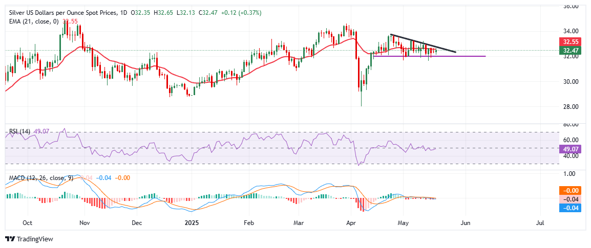 银价(白银/美元)周二在 32.60 美元附近上涨,回升至日内低点 32.13 美元附近,因该金属在连续两天下跌后重新获得动能。