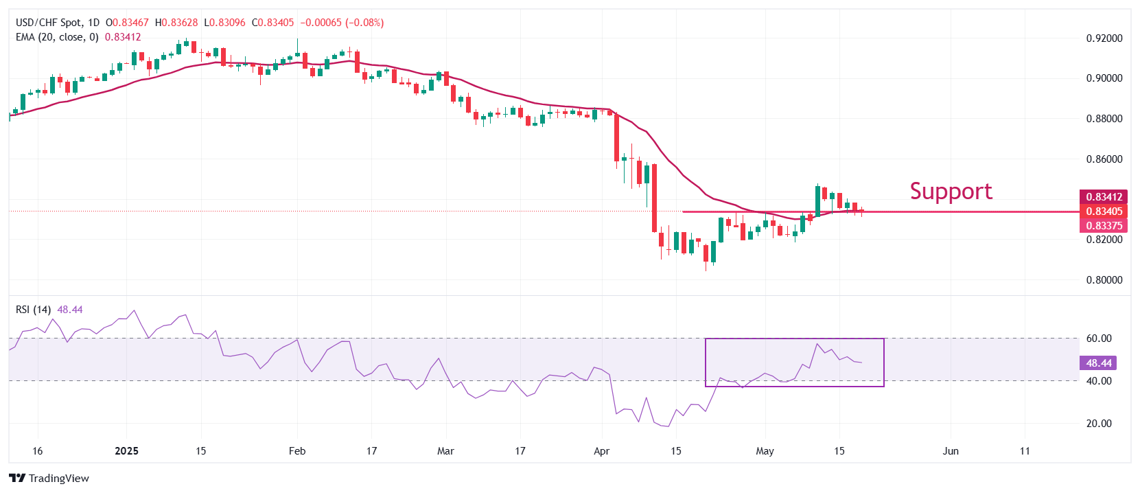 美元/瑞郎在周二北美交易时段回升至0.8340附近,扭转了最初的跌幅。瑞郎兑美元反弹,因美元指数(DXY)在接近周低点100.00附近吸引买盘后反弹。
