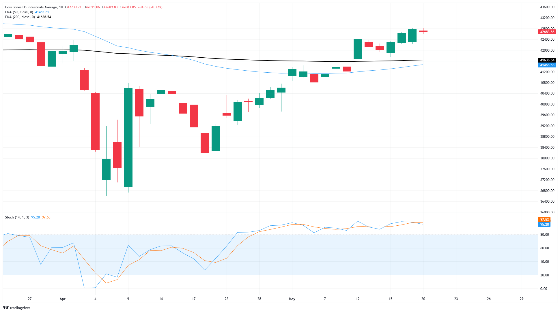 道琼斯工业平均指数(DJIA)在近期的看涨势头中暂时停顿,周二回落至24,500区域。股市在关税后复苏反弹中喘息,投资者在等待贸易谈判的实质性进展。