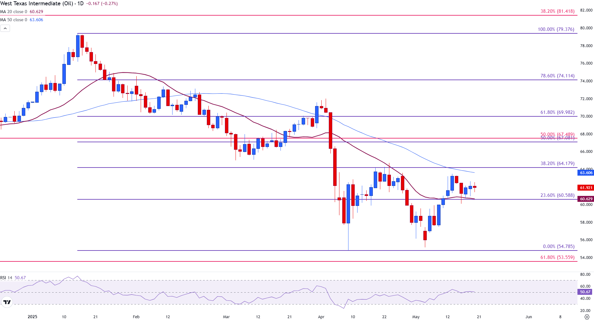 WTI 原油在关键水平之间整合,交易者静候经济信号