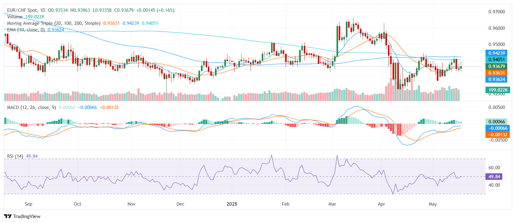 欧元/瑞士法郎价格分析:交叉盘汇率在0.94附近持稳,动能信号混杂