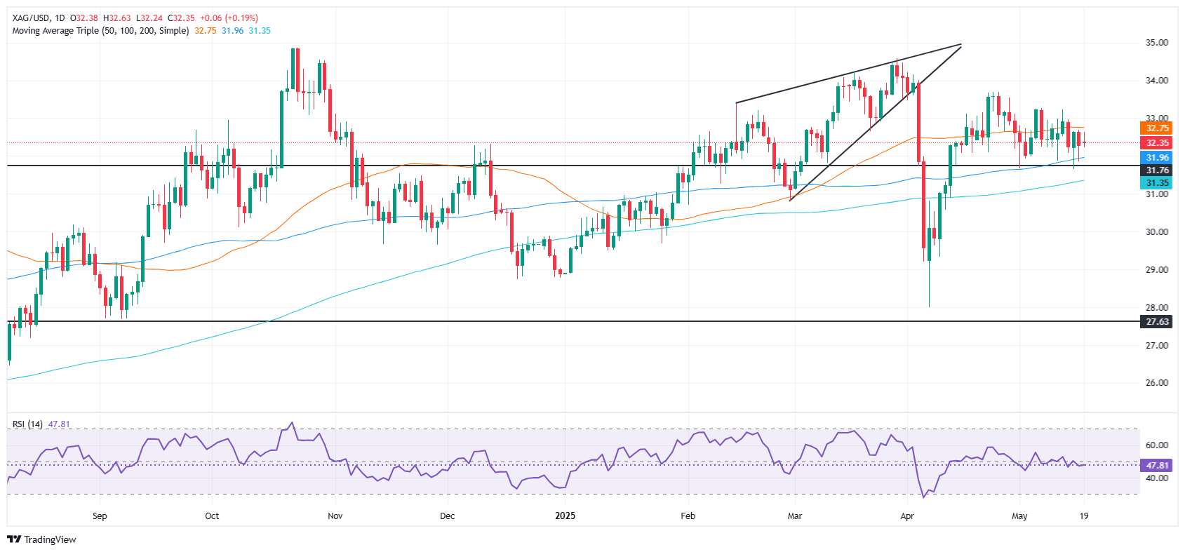白银价格预测:白银/美元在32.30美元附近徘徊,因美元延续跌势