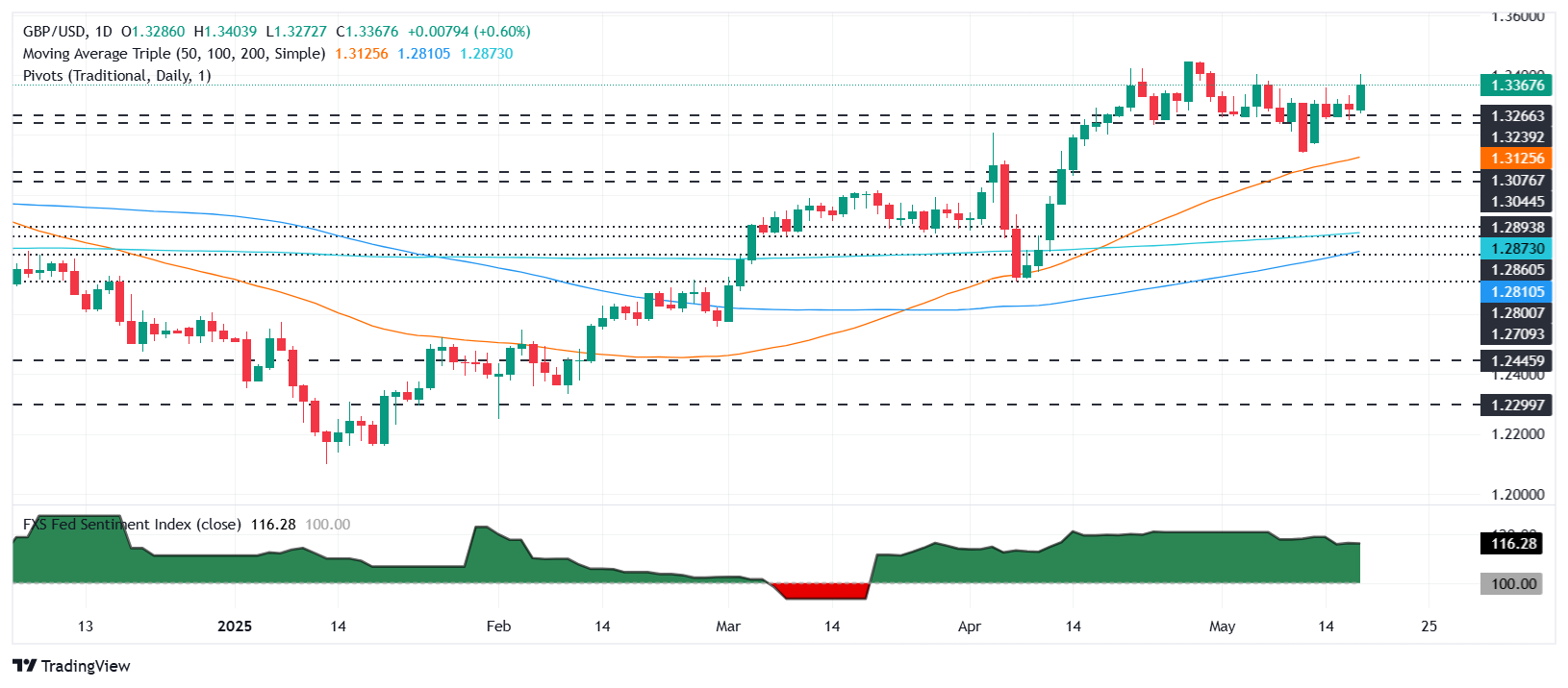 周一,英镑(GBP)大幅上涨,因穆迪将美国债务评级下调至 Aa1,给美元(USD)带来压力。截至发稿时,英镑/美元报 1.3360,上涨 0.71%