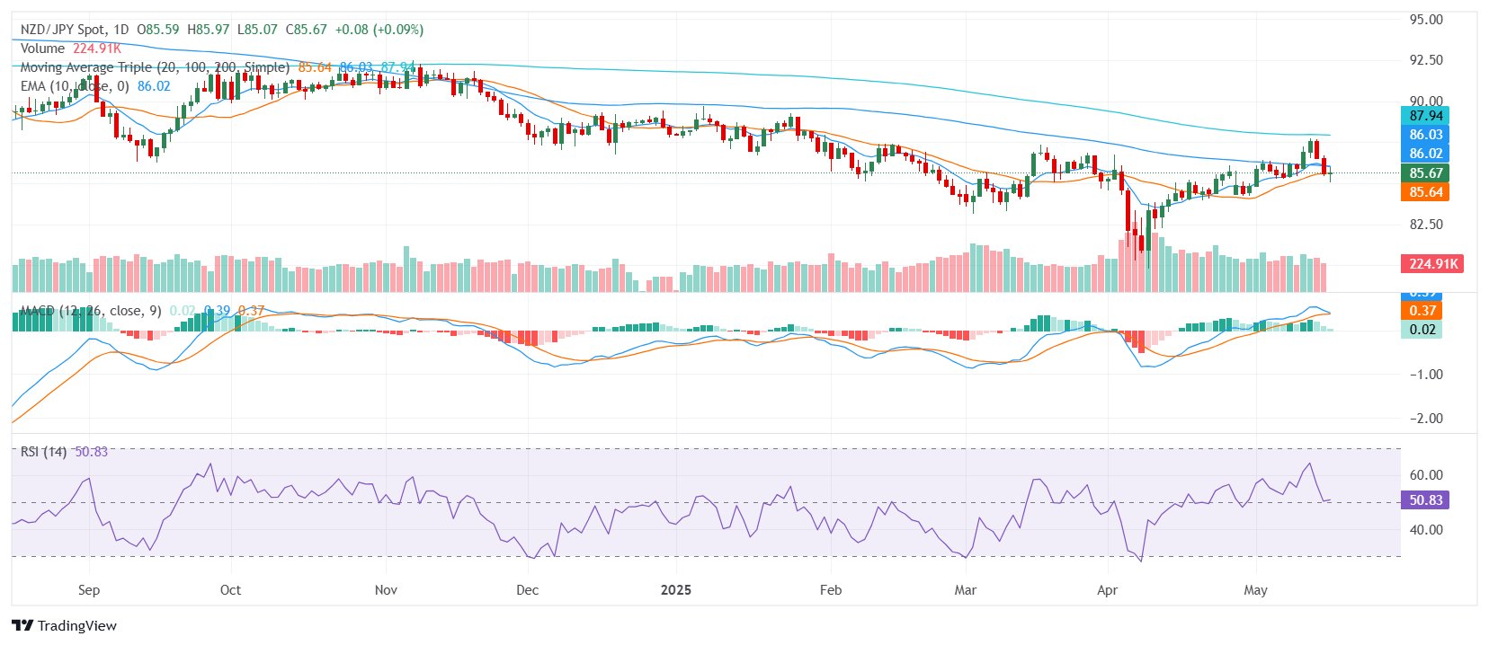 纽元/日元在周五亚洲时段前试图维持适度涨幅,目前交投于85.70区域附近