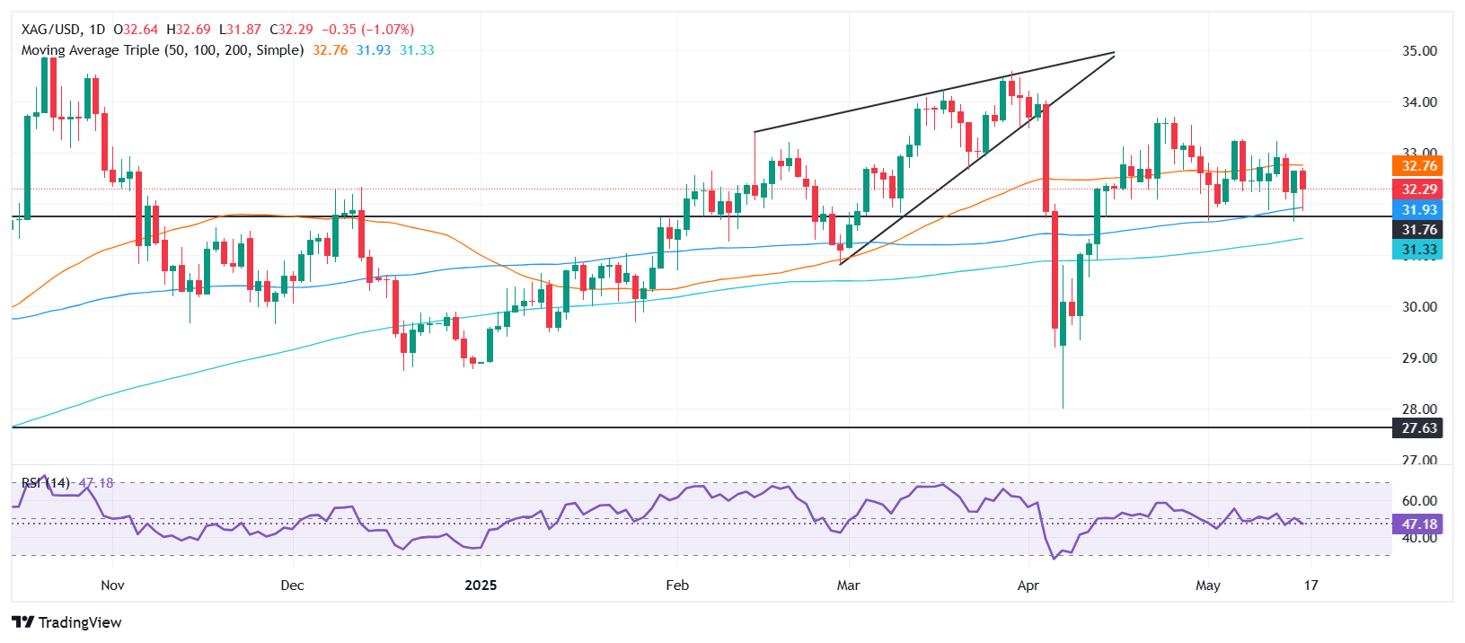 白银价格预测:白银/美元因美国收益率反弹而下滑,徘徊在32.50美元以下