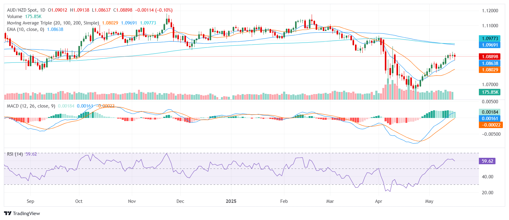 周五,澳元/纽元面临轻微的抛售压力,徘徊在1.0900区域附近,市场即将进入亚洲时段。尽管出现小幅亏损,但整体技术前景依然乐观,多个关键指标一致支持该货币对的上行趋势