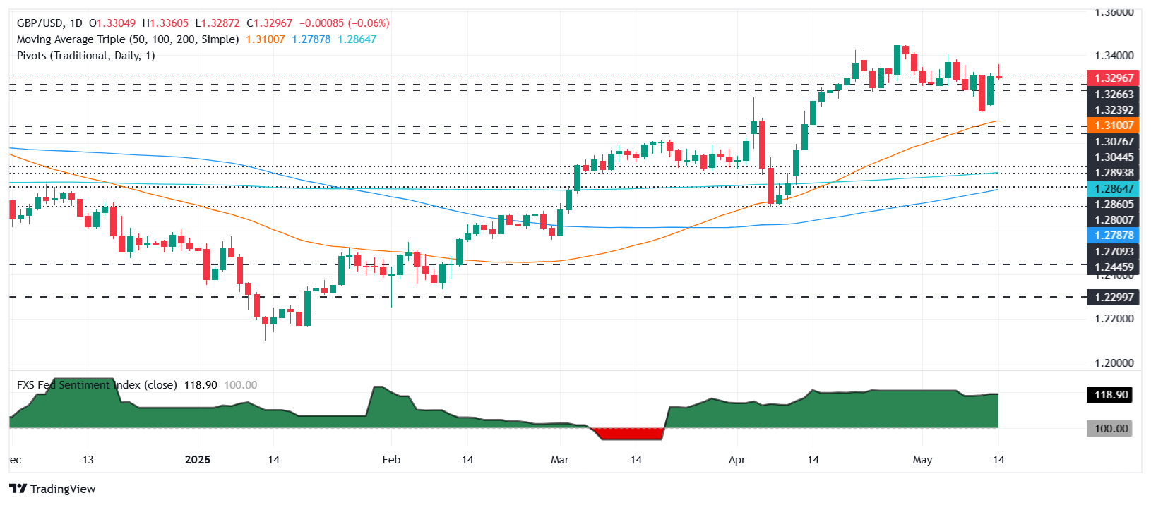 英镑(GBP)在周三抹去了一些早前的涨幅,此前曾触及 1.3359 的周高点,因缺乏催化剂而小幅下跌 0.03%,交易者正准备迎接英国(UK)国内生产总值(GDP)数据的发布。截至发稿时,英镑/美元报