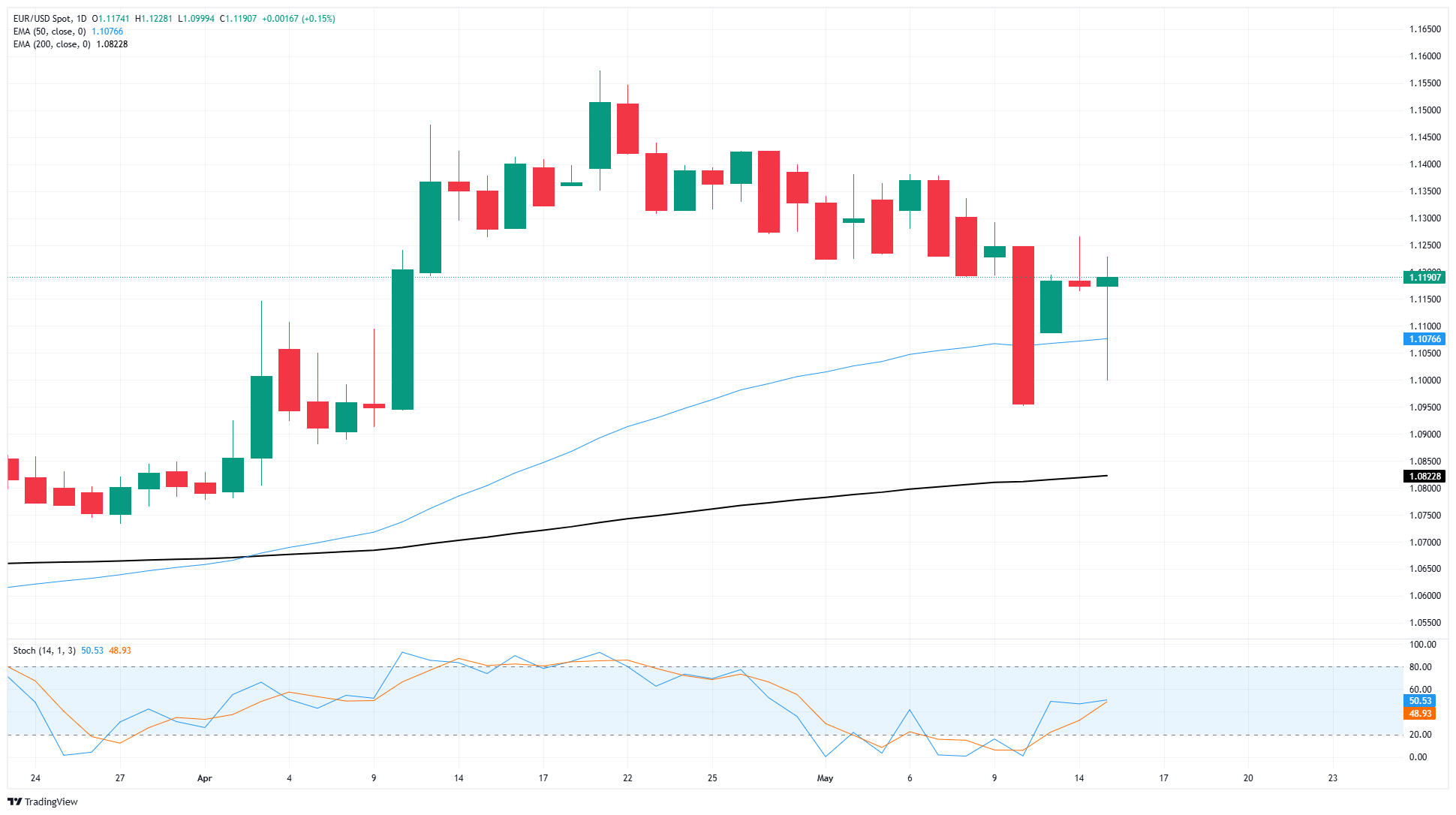 欧元/美元周四波动剧烈,短暂回落至50日指数移动平均线(EMA)下方,并在一周内第二次触及1.1000水平。晚间的反弹将Fiber买盘推回到交易日开始时的水平,接近1.1200关口