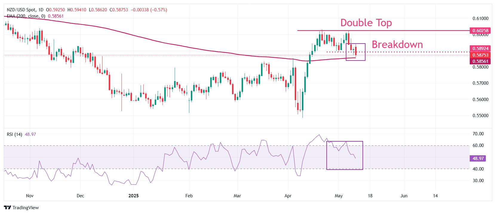 纽元/美元价格预测:预计在200日指数移动平均线下方将有更多下行空间