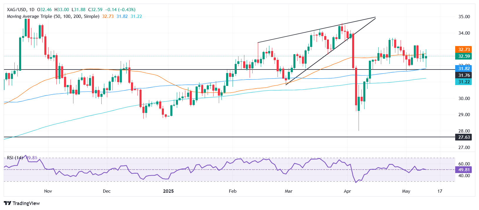周一,银价结束交易时段,损失超过0.40%,因为上周末美国和中国代表团会议传来的乐观消息达成了为期90天的关税减免协议,标志着谈判的开始