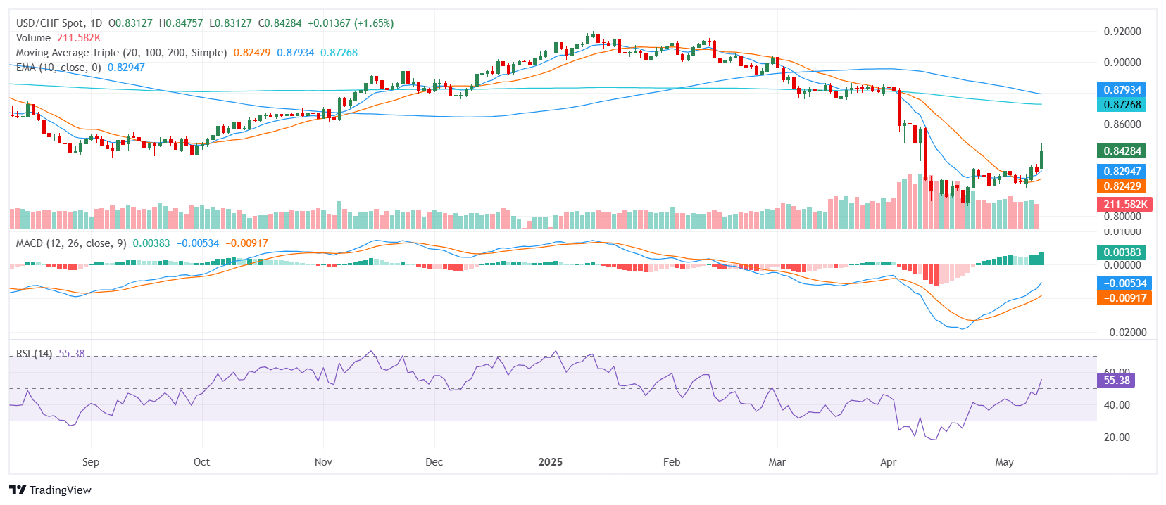 美元/瑞郎交易走高,受到美元(USD)在美中贸易关系重大突破后普遍反弹的支持
