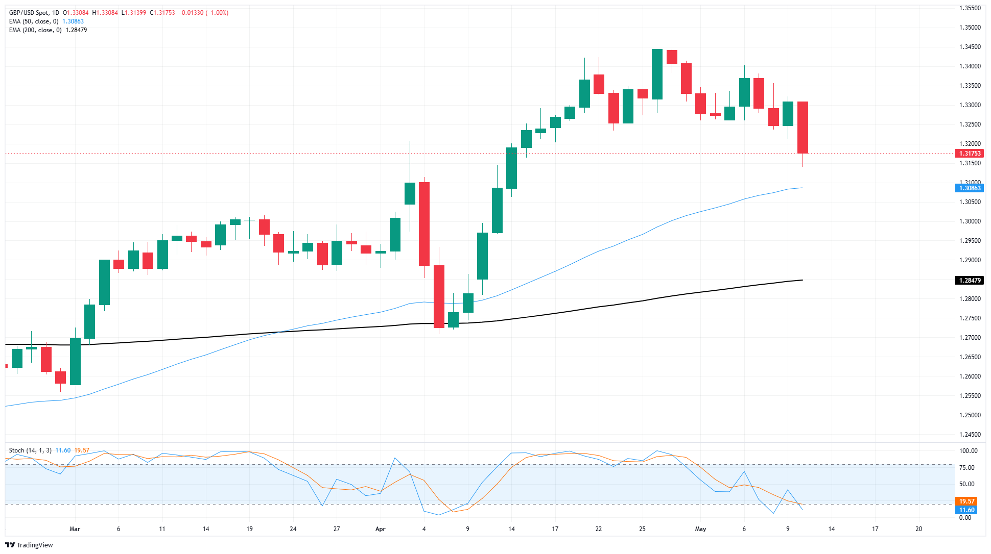 英镑/美元周一下跌,跌幅略超过 1%,使得该货币对重新跌回 1.3200 水平以下,此前美元普遍反弹。
