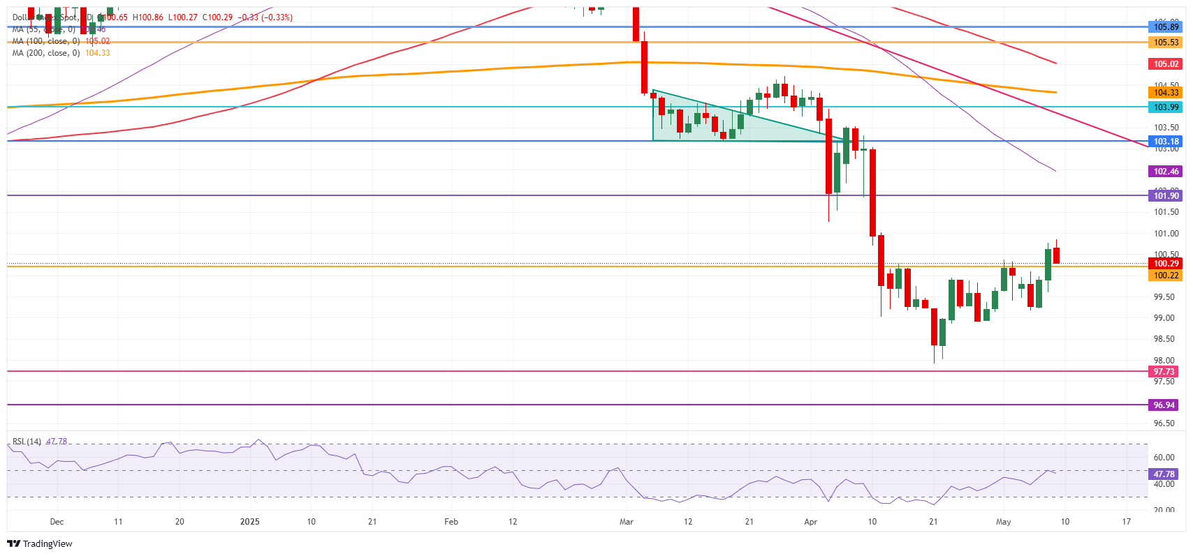 美国美元指数(DXY)追踪美元(USD)对六种主要货币的表现,本周五在美国与中国的贸易谈判即将在瑞士举行之前,完全逆转了走势