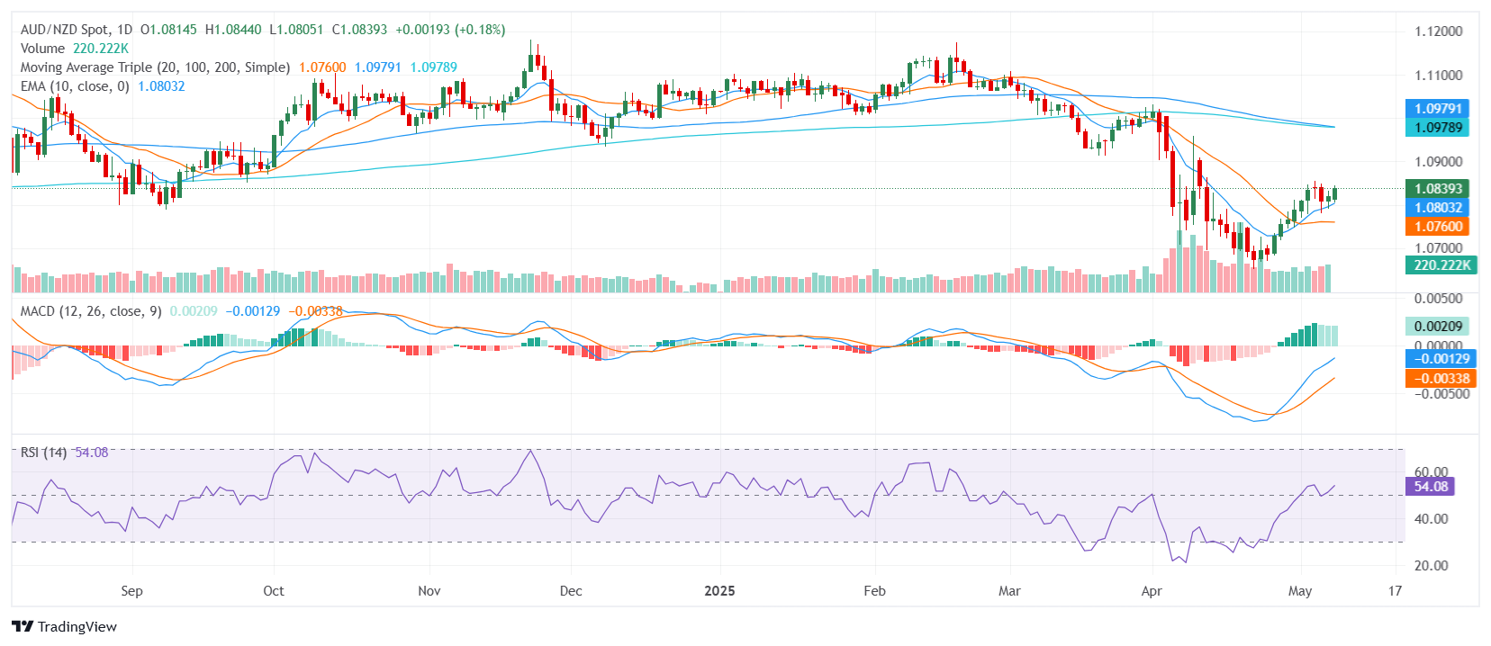 澳元/纽元价格分析:澳元在1.0800附近延续涨势,看涨动能增强