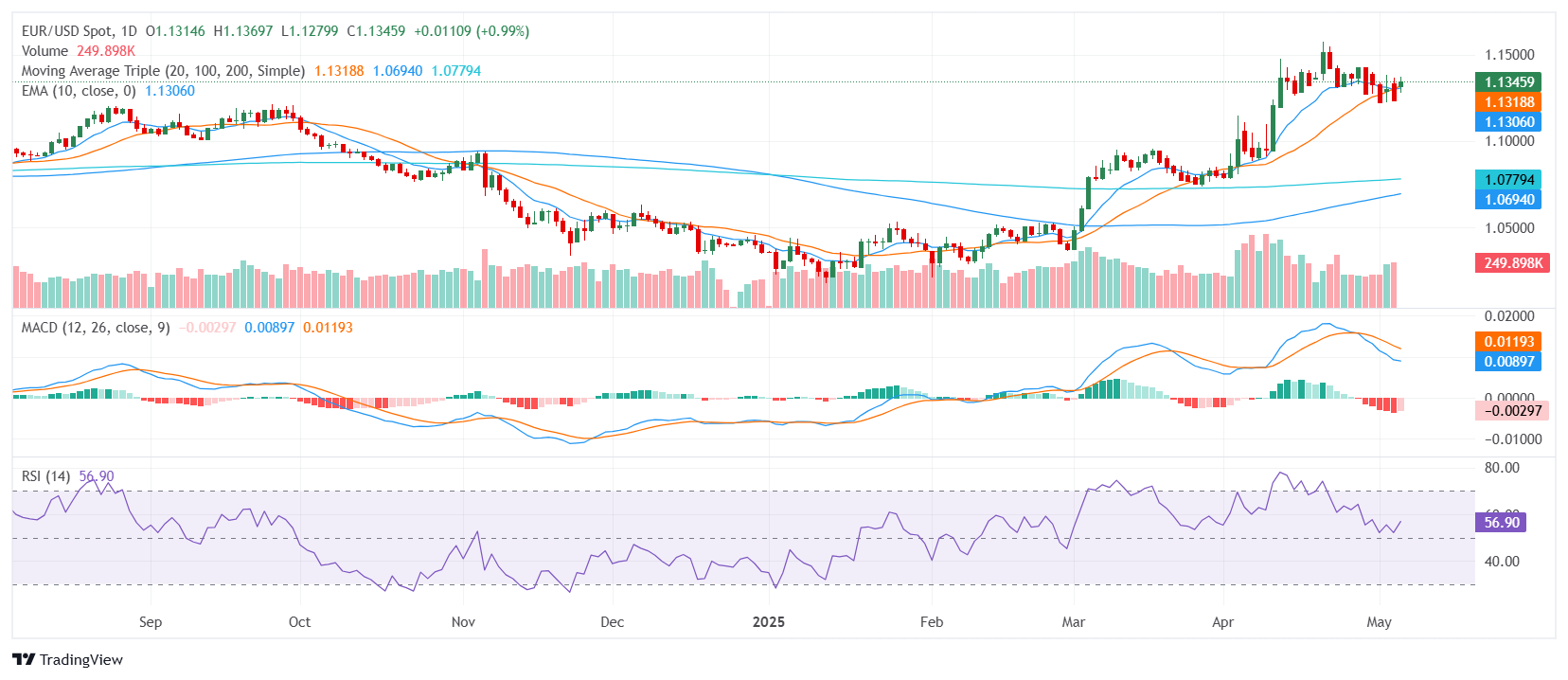 欧元/美元价格分析:欧元在1.1300附近稳住,保持看涨偏向