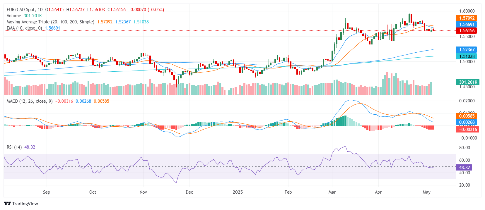 周二,欧元/加元小幅下跌,徘徊在1.5600附近,此前该货币对在欧洲交易时段内回落至当日区间内。