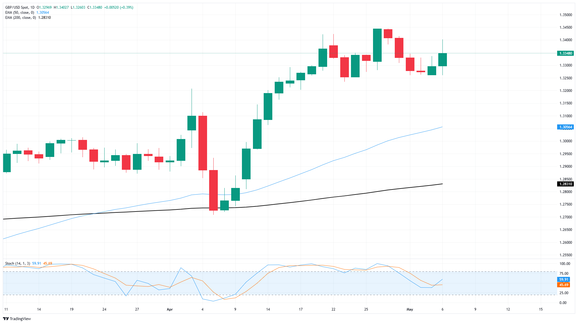 英镑/美元周二上涨,日内攀升0.4%,测试1.3400关口,因有可能达成美英贸易协议的消息,这将使英国避免特朗普政府积极追求的贸易关税的冲击。
