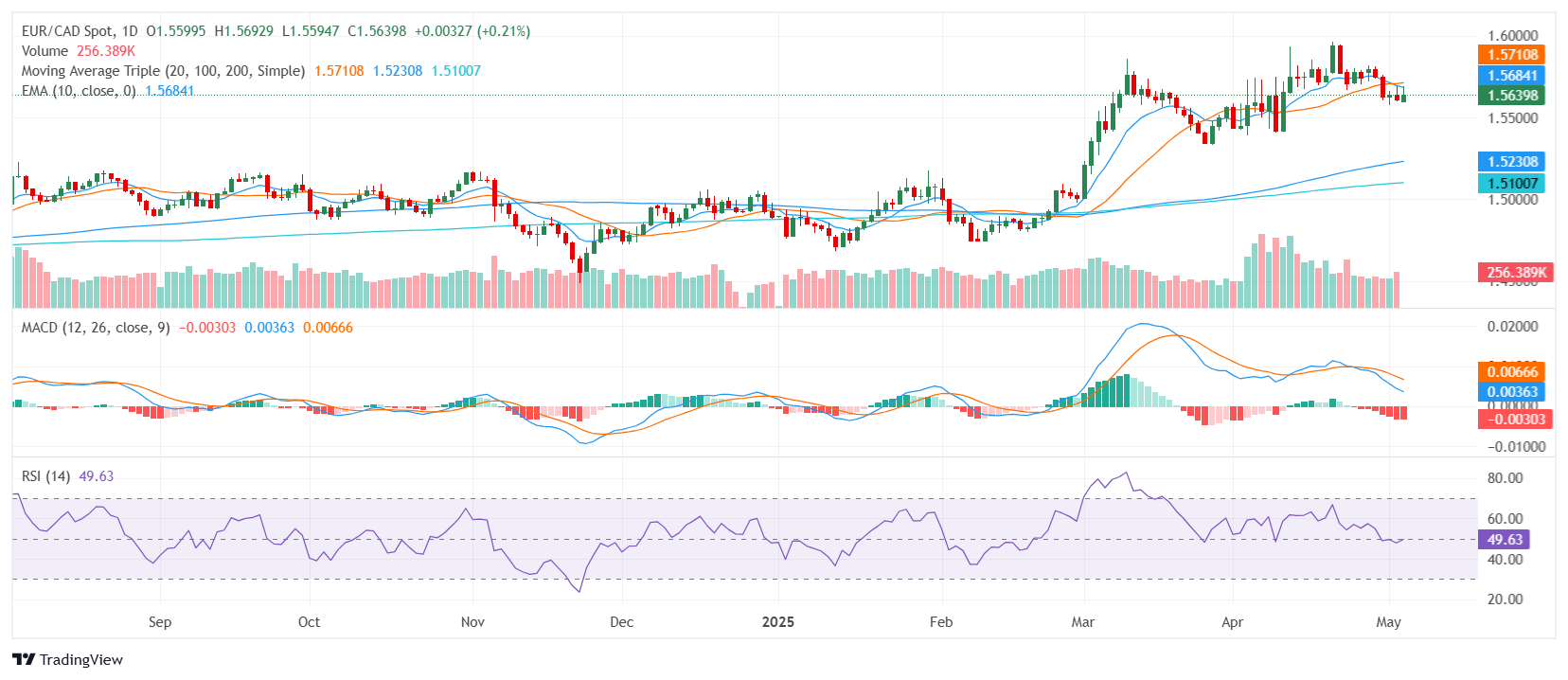 周一,欧元/加元交投于1.5600附近,在欧洲时段后小幅上涨。尽管价格走势仍在日内区间的中间,但该货币对显示出潜在的强劲迹象,与更广泛的看涨结构相一致