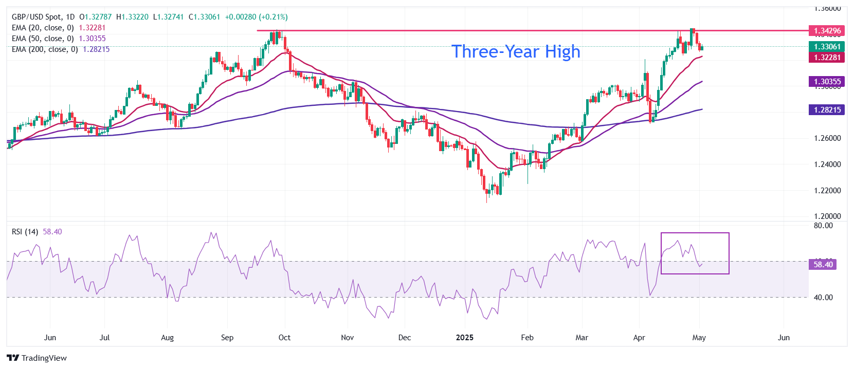 英镑(GBP)在周五的北美交易时段从兑美元(USD)1.3320的日高回落。英镑/美元货币对在美国4月份非农就业数据(NFP)发布后,美元反弹,回吐了一些盘中涨幅。