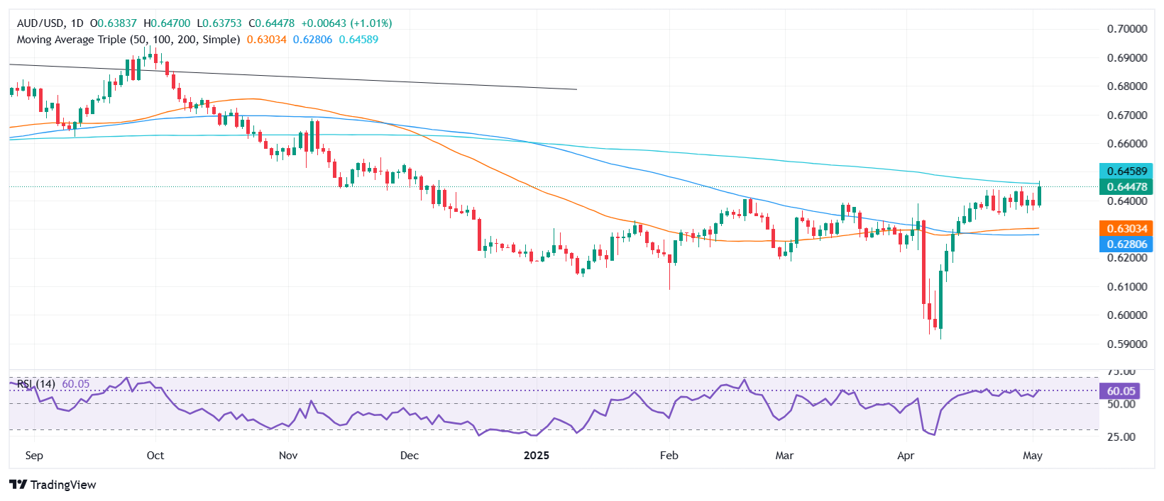 澳大利亚元飙升至年内新高 0.6469,因美国强劲的就业报告显示经济依然稳健,涨幅超过 1.20%