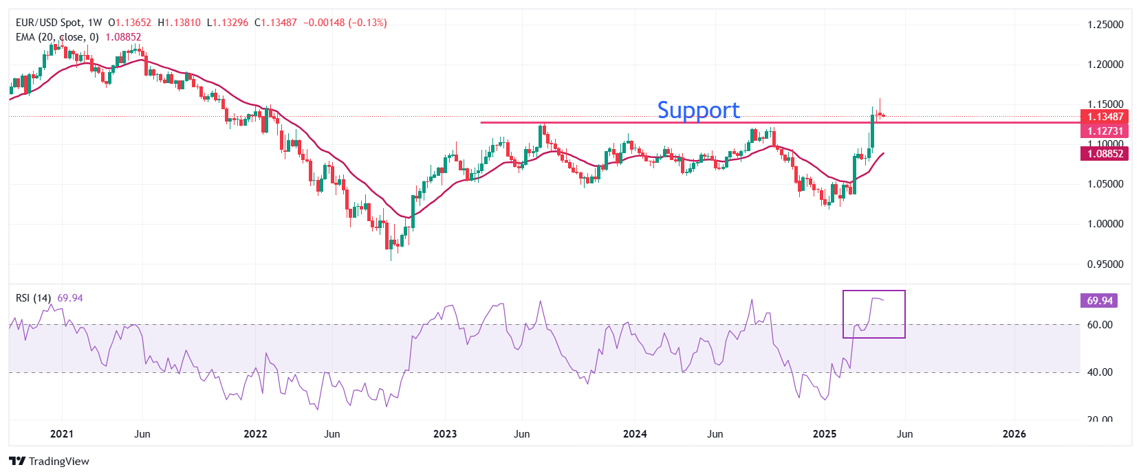 欧元/美元在周一北美交易时段小幅下跌至接近 1.1345。