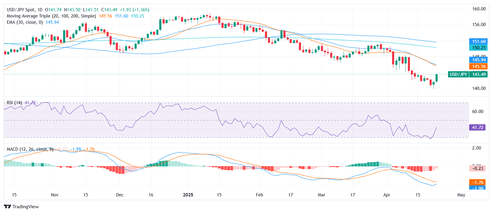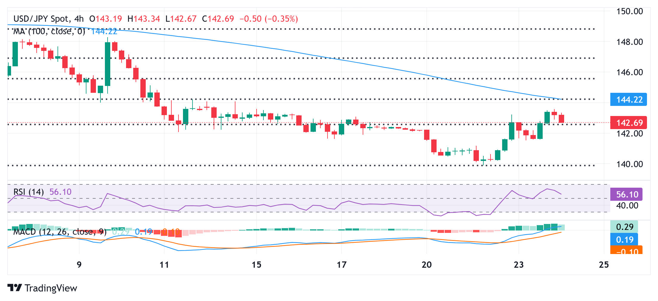 美元/日元在美联储担忧减轻和贸易乐观情绪中测试143.00