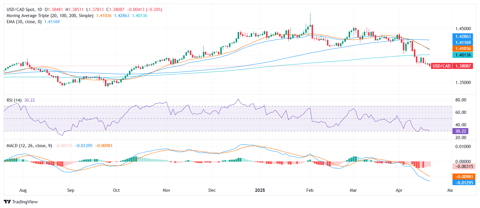 美元/加元在周一继续走低,交易接近 1.3800 水平,因为美元在一波政治新闻后仍处于防守状态