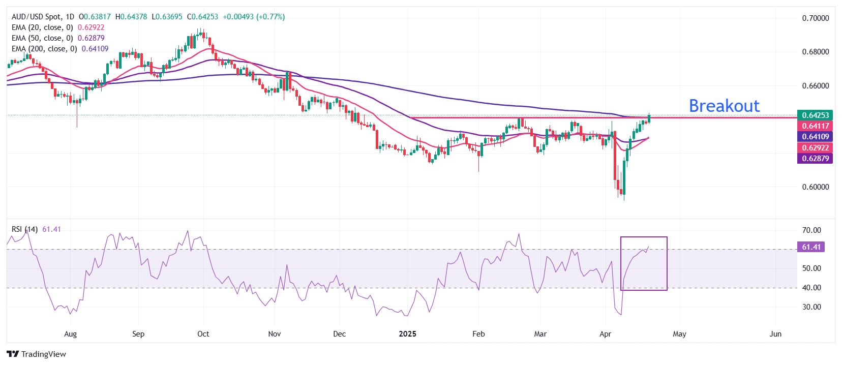 澳元/美元价格预测:刷新四个月高点,突破0.6400