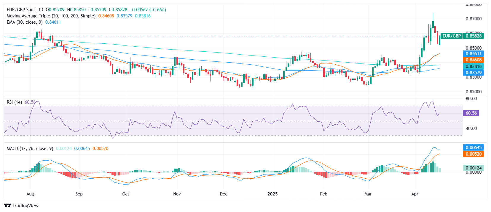在周三的交易中,欧元/英镑延续了其上涨势头,攀升至 0.8600 区域,日内上涨 0.45%
