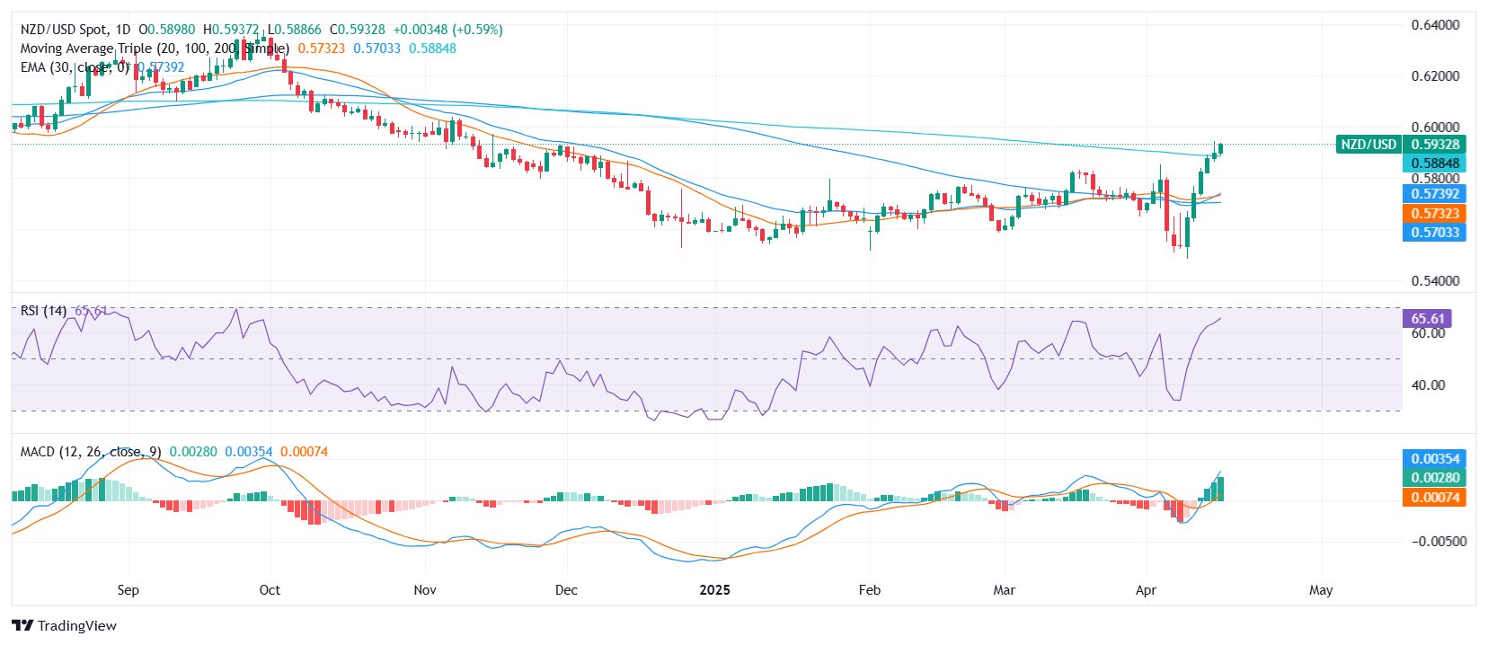 纽元/美元价格分析:纽元在0.59附近延续涨势,但动能信号显示谨慎