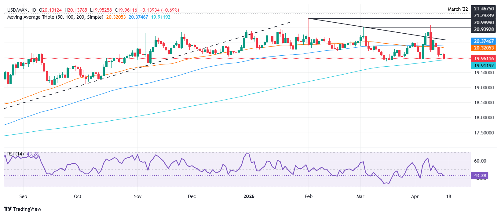 墨西哥比索继续对美元升值,因为市场需求依然疲软,而美联储主席杰罗姆-鲍威尔强调他仍然稍微关注通胀,因为经济接近充分就业。截至撰写时,美元/墨西哥比索交易于19.96,下降0.58%