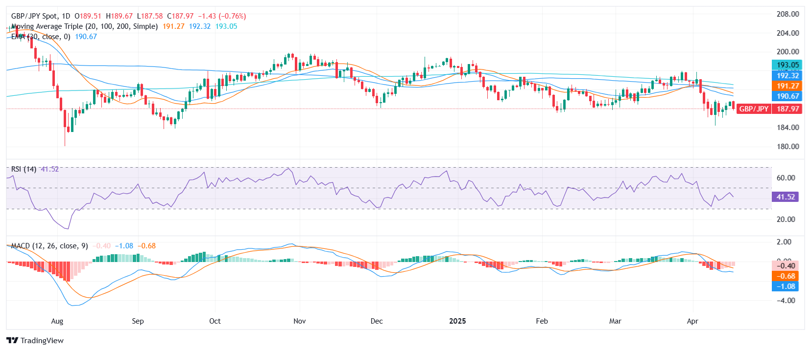 英镑/日元价格分析:随着英镑在188附近走弱,空头延续控制