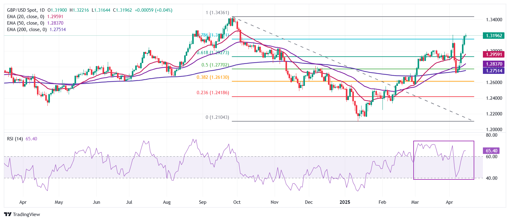 英镑/美元突破1.3200,创下6个月新高,市场因关税动荡而避开美元