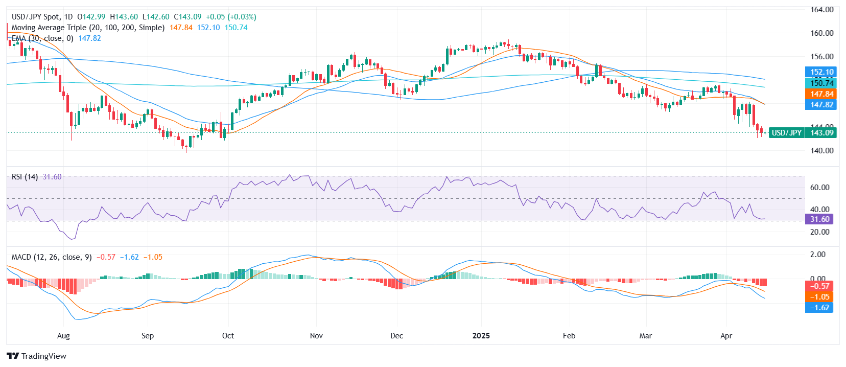 美元/日元在周二小幅上涨,徘徊在143区域,略微上升于其日内区间。日内的温和反弹发生在亚洲时段之前,但尚未挑战主导图表的更广泛看跌信号
