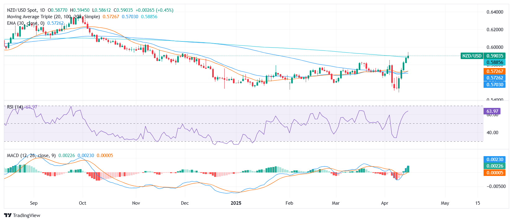 纽元/美元价格分析:在持续看涨信号下,纽元维持在0.5900附近