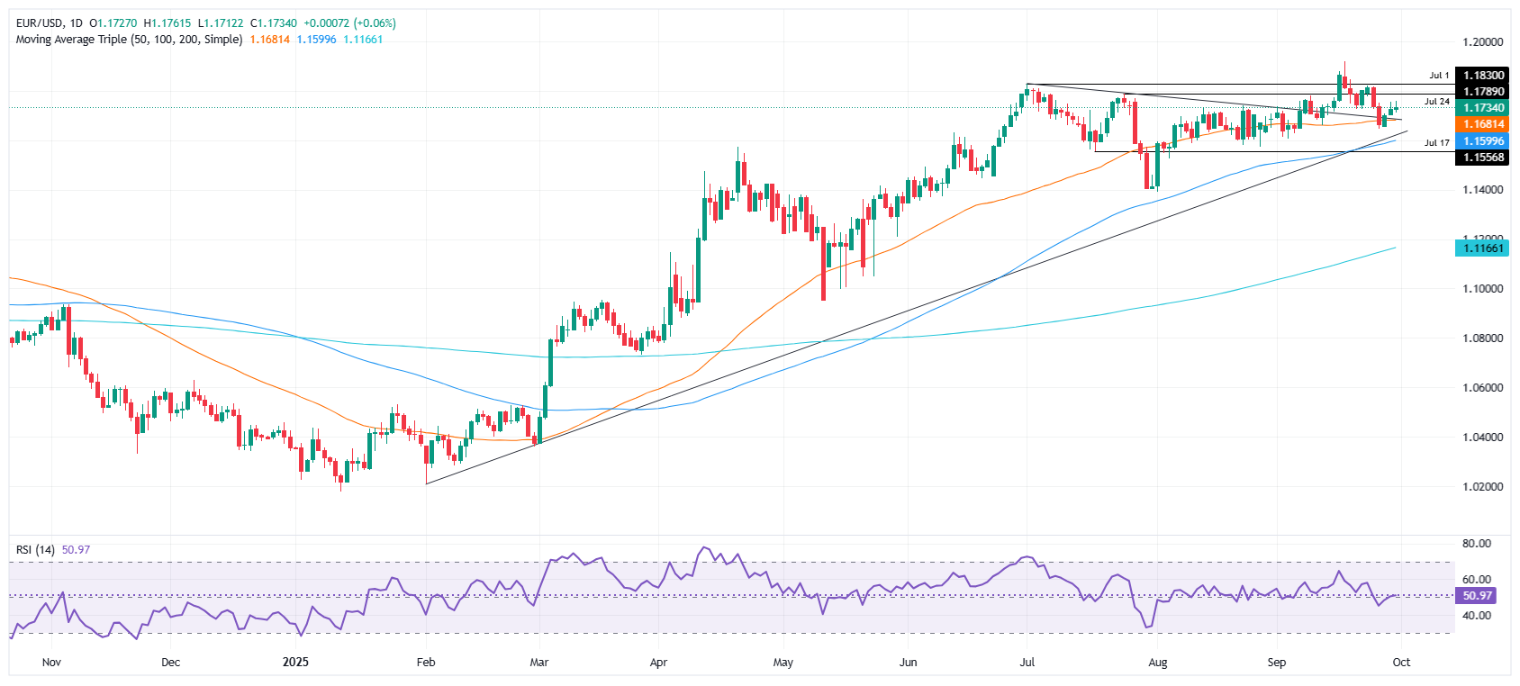 欧元/美元在周二的北美时段保持坚挺,尽管由于可能的政府关门担忧,美元走弱,这可能会干扰美联储官员发布关键就业数据的进程。在撰写本文时,该货币对交易于1.1735,微涨0.05%