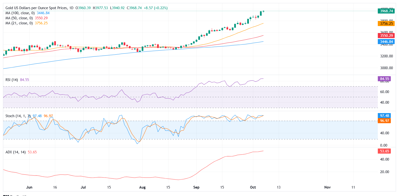 黄金(黄金/美元)继续其历史性攀升,周二再次创下接近 3991 美元的历史新高。