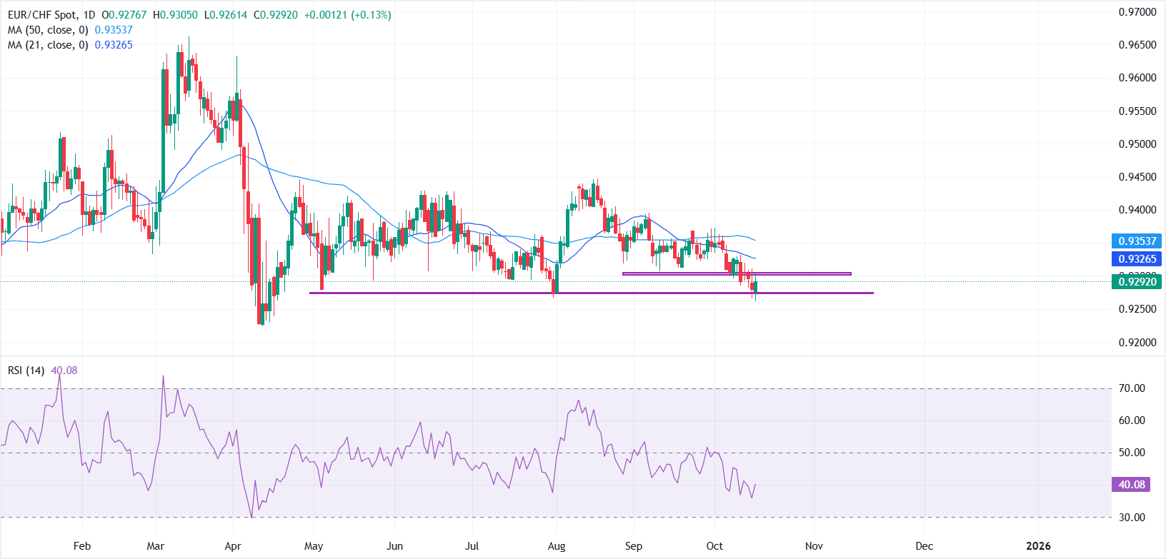 周四,欧元(EUR)对瑞士法郎(CHF)走强,欧元/瑞郎在当天早些时候短暂跌至4月17日以来的最低水平后,结束了四天的下跌趋势。截至撰写时,该货币对交易于0.9290附近,保持坚挺,买家在突破0.9300心理关口方面面临挑战。