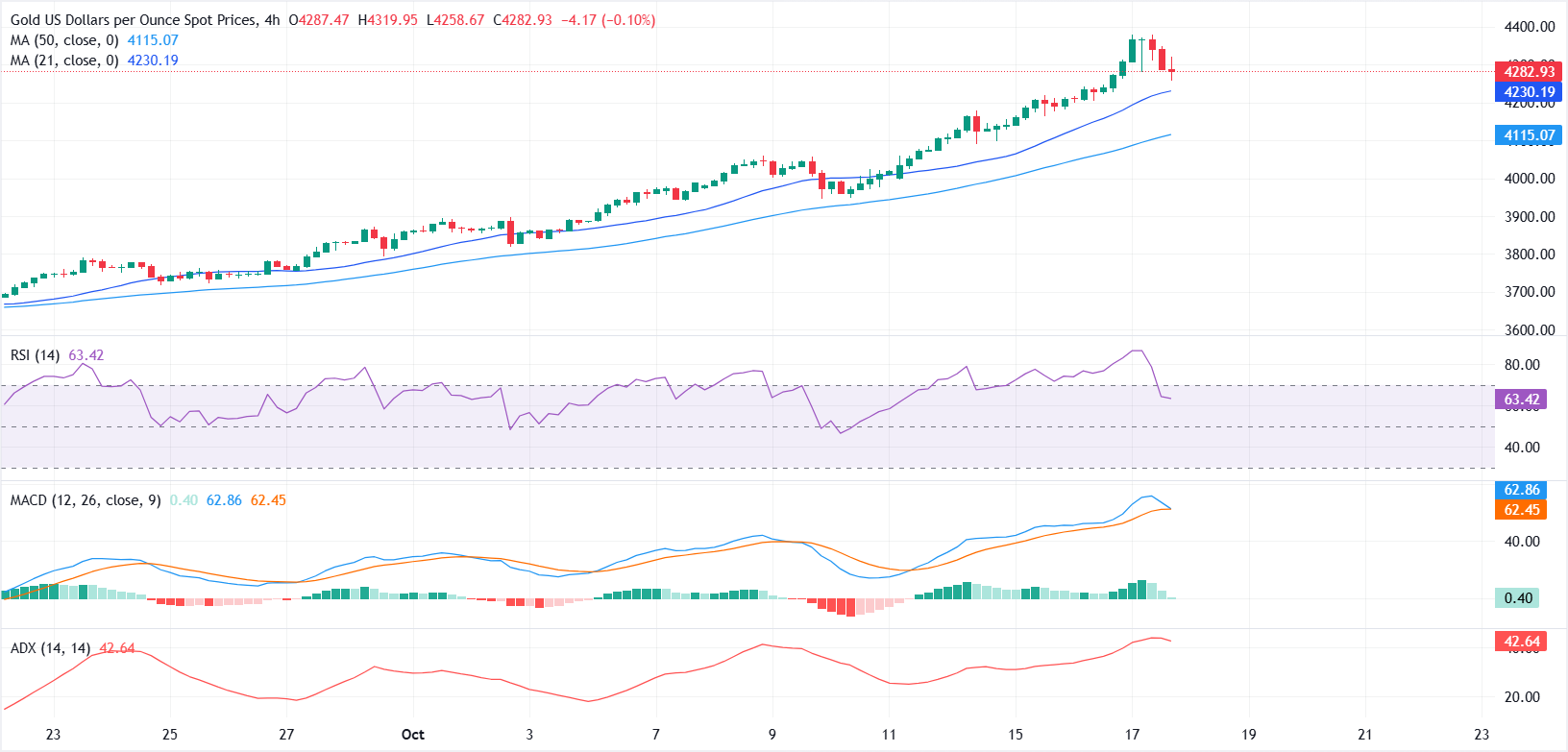 黄金(黄金/美元)在上周五再次触及约4380美元的历史新高后小幅回落,投资者在地缘政治、经济和财政不确定性中寻求可靠的价值储存。