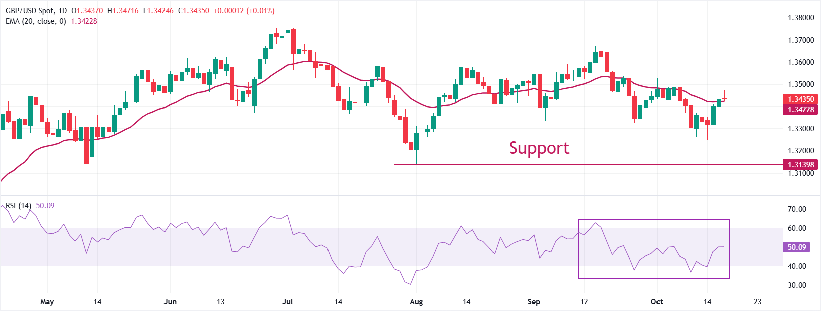 在周五的欧洲交易时段,英镑(GBP)兑美元(USD)维持在1.3470附近。尽管美元指数(DXY)面临卖压,GBP/USD货币对仍然平稳,暗示英镑的疲软。