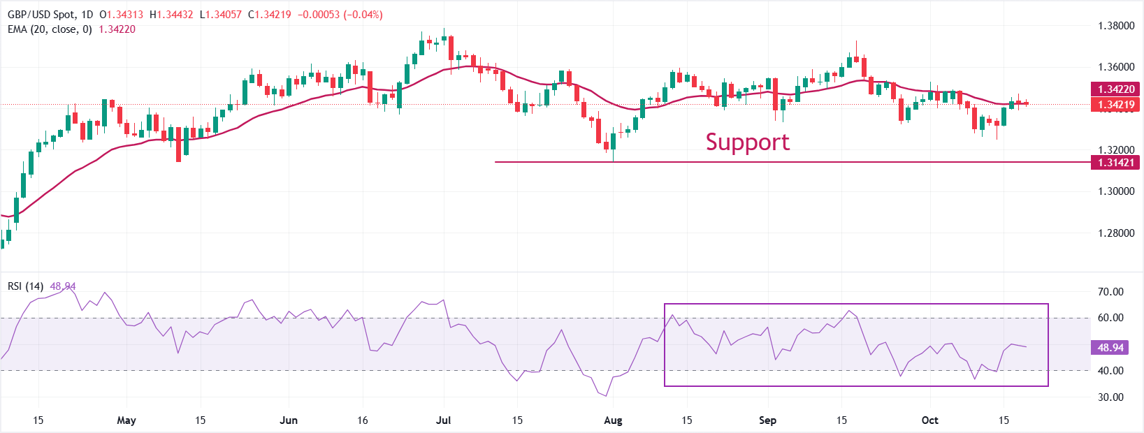 英镑(GBP)在本周初表现不及大多数同行。由于投资者在等待将于周三公布的英国(UK)9月份消费者物价指数(CPI)数据时变得谨慎,英镑面临压力