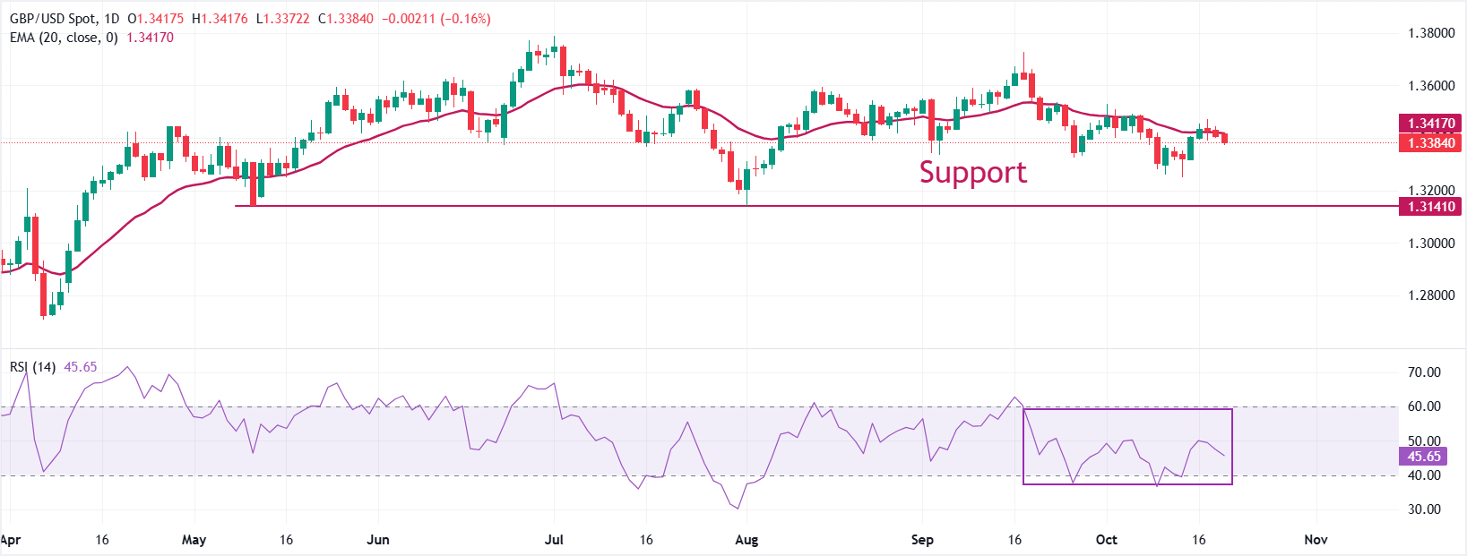 英镑(GBP)在周二继续对美元(USD)下跌,已连续第三个交易日。GBP/USD货币对进一步下滑至接近1.3370,因为美元在美中即将达成贸易协议的预期中延续其反弹走势。